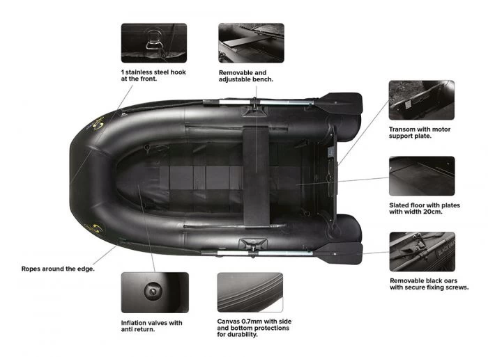 Product Code Model Overall Length (cm) Overall Width (cm) Inside Length (cm) Inside Width (cm) Weight (kg) Max Power HP Max Load (kg) Max Person RRP €