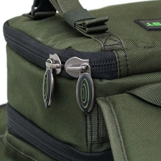 The rucksack is made from a tough and durable 600 denier fabric with a reinforced waterproof base. The bag has three external zipped pockets, along with a foil-lined top compartment which is ideal for storing bait and other items of tackle. The inside of the bag is padded and also has an internal clear zipped pocket on the bottom of the lid.