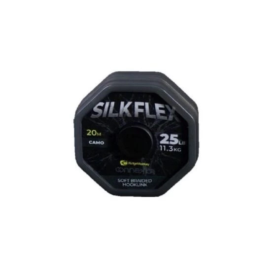 Ultra fine braided hooklink material. Super supple, the SilkFlex Soft Braid is perfect for use in solid PVA bags and as an ideal alternative hooklink when targeting pressured fish that have seen it all before. Brilliant for use as the supple section of a traditional Combi rig, offering ultimate flexibility. Excellent abrasion resistance and low visibility finish. Available in Camo in 25lb/11.3kg breaking strain. 20m per spool.