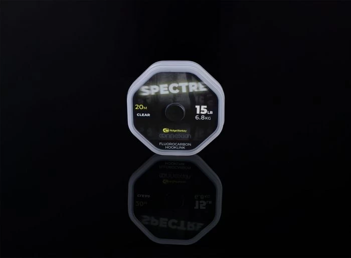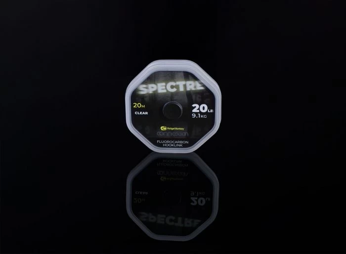 Ultra low visibility 100% fluorocarbon hooklink material. Nearly invisible when submerged, the high density Spectre Fluorocarbon will pin itself to the lakebed and is suitable for a wide range of applications. Originally developed as a hooklink material with medium flexibility, also perfect when used as a concealment leader when targeting particularly wary fish. 15lb/6.8kg and 20lb/9.1kg breaking strains available. 20m per spool.